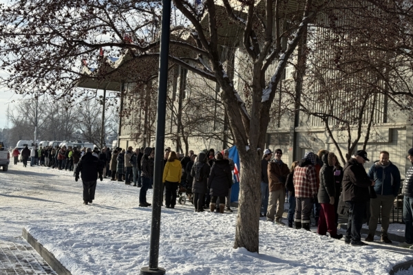 1月26日(周一),在牛仔节公园的Big Four展厅门外,数千名支持独立公投、等待签字的人大排长龙。尽管天气寒冷,络绎不绝的民众仍然前来支持这项运动。许多人表示,他们对联邦均衡拨款(Equalization)的政策深感失望。