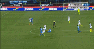 上半场比赛,第2分钟,穆里略滑铲犯规领到了本场比赛的第一张黄牌。第7分钟,马卡罗内在禁区内倒地,可是裁判并没有鸣哨。第10分钟,国米取得领先,坎德雷瓦右路传中精确制导,伊卡尔迪门前头球冲顶破门,国米1-0恩波利。随后,坎德雷瓦开出角球,若奥-马里奥弧顶附近迎面怒射,可惜打偏。第16分钟,国米扩大比分,若奥-马里奥中圈断球后送出直传球,伊卡尔迪接球面对出击的门将推射右侧破门,国米2-0恩波利。第20分钟,坎德雷瓦右路传中,佩里西奇禁区内不停球直接凌空抽射,皮球被防守球员挡出。