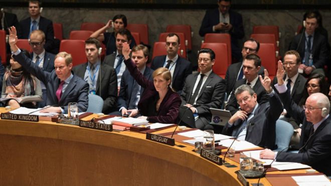 2016年3月2日,聯合國安理會以15票贊成一致通過了由美國提交進一步制裁朝鮮的決議草案。