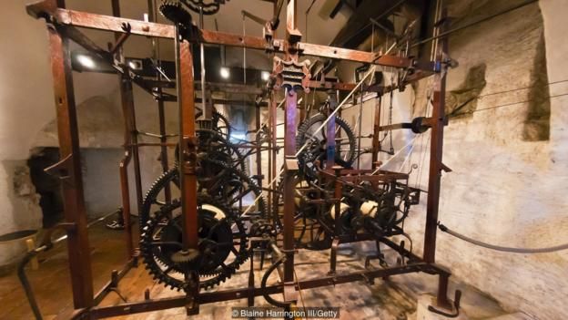 在瑞士伯尔尼的核心,这位退休的工程师每周几次带着一小群游客沿着狭窄的旋转楼梯拾级而上。然后,他用一根木棍当做教鞭,向人们解释一个不断摆动的钟摆是如何神奇地驱动铁质部件一秒钟又一秒钟的走过了500多年。