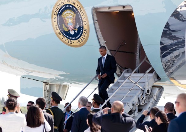奥巴马从飞机肚子里自己的悬梯下,搞得连总统都对他们自己人不满意。
