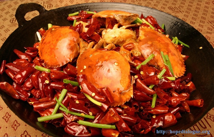 3.坐锅点火放油,油至三成热时,放入花椒、干辣椒炒出麻辣香味时,加入姜片、葱段、蟹块,倒入料酒、醋、白糖、盐翻炒均匀出锅即食。