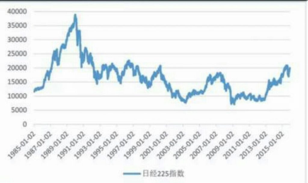 日本股市指数,1989年底达到顶峰,一路暴跌。