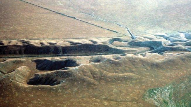 從Carrizo Plain高空遠觀聖安德里斯斷層的景象。(USGS)