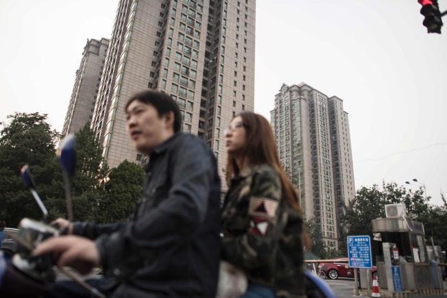 中國房地產狂飆,令政府及人民同感憂慮。圖為9月兩名北京民眾騎車經過一處豪華大樓。(Getty Images)