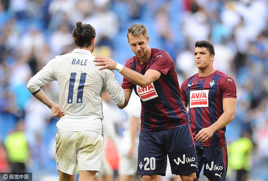 凤凰体育讯 北京时间22:15,2016-2017赛季西班牙足球甲级联赛第7轮迎来一场焦点之战,皇家马德里主场迎战埃瓦尔。上半场,里科头球打破僵局,贝尔随后扳平比分,下半场,双方都没有取得进球,最终,皇马主场1-1被埃瓦尔逼平,联赛遭遇3连平,各项赛事4连平。目前多赛1轮以净胜球优势领跑积分榜。