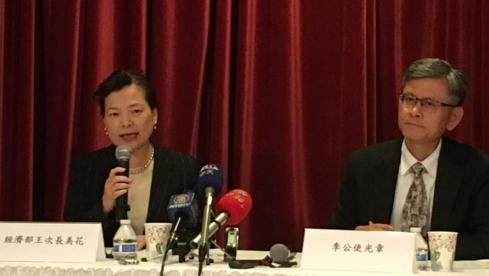 王美花晚间在台湾驻美代表处举行的记者会上介绍了美台双方针对农业、区域多边合作、知识产权及医药专利、技术性障碍及投资、透明化的议题。