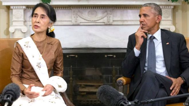 2016年9月,奥巴马在白宫与昂山素季会晤美国总统奥巴马正式发出行政指令解除美国对缅甸的多年制裁。
