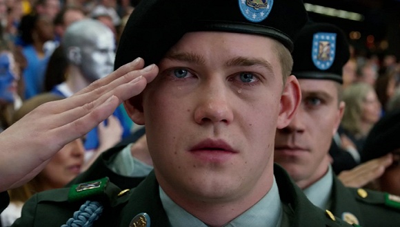 主角比利·林恩(乔·阿尔文饰)虽身处不同的场景,但无论是伊拉克的生死战场、灯光璀璨的橄榄球场还是与无情的NFL球队老板(史蒂夫·马丁饰)间的对峙场景,都带有强烈的紧张感。