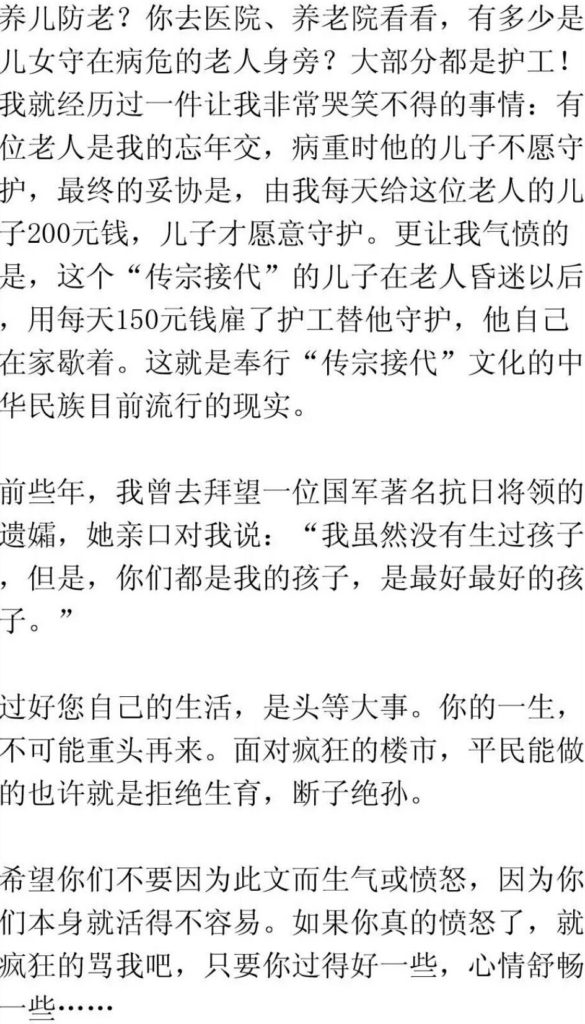世界上几乎没有一个民族像中国人这样多情,不仅要自己整天忙碌,作为平民,自己顾自己都岌岌可危,还要给孩子买一套房。这是多大的一个自寻的烦恼或苦难啊!