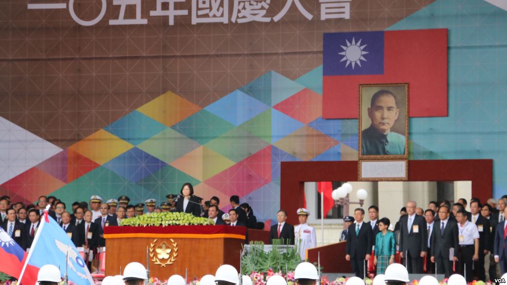 蔡英文双十节呼吁两岸尽快对话 (美国之音易林拍摄)