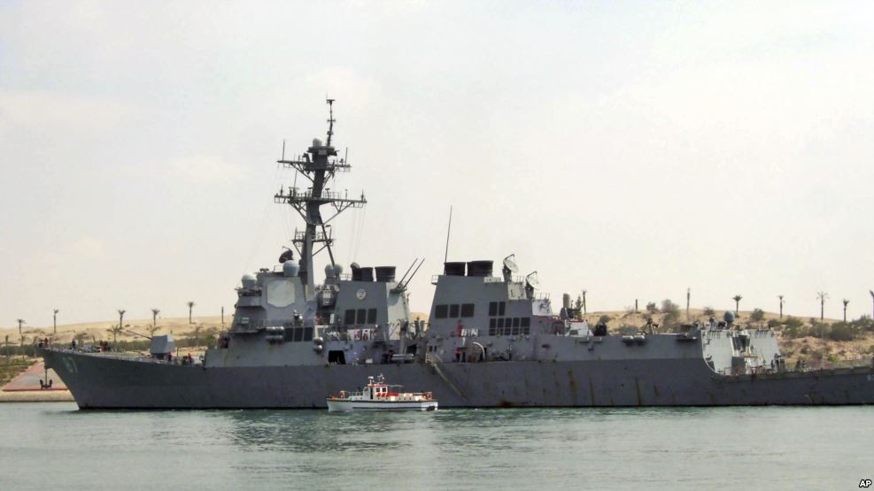 美国官员说,也门胡塞反政府武装星期三向红海的美国海军驱逐舰发射了一枚导弹,不过没有命中目标。