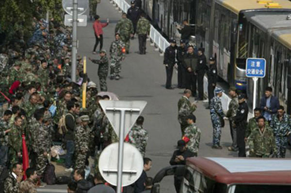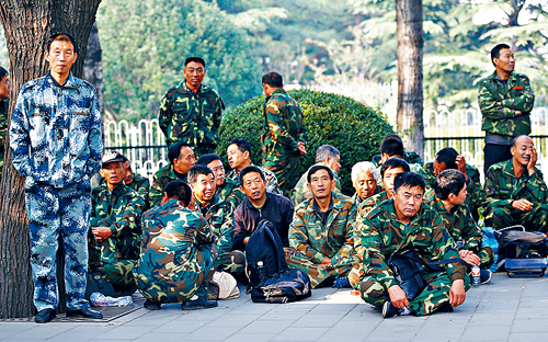 中国十一黄金周刚过几天,就有数以千计的退伍解放军老兵从各地进入北京,到中央军委反映其生存方面的种种困难,要求提高生活待遇,解决他们在地方下岗失业或再就业等问题。僵持近10小时后政府多个相关部门出面安抚,次日清晨用大巴将请愿者全部带离现场,送往郊区控制,并陆续由原籍地副省长或其他高级别官员带回。