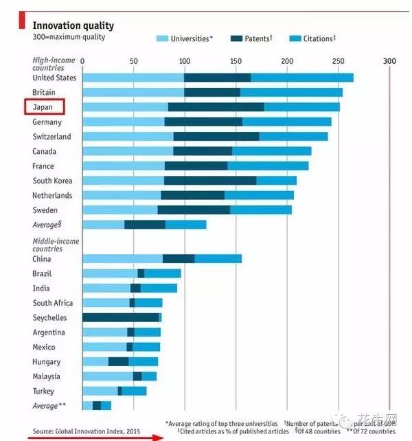 《Economist》发表2015国家创新质量(Innovation Quality)报告,日本位列世界第三。