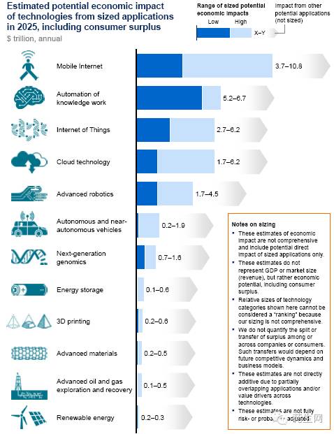麦肯锡2013发布研究报告,罗列了有望改变生活、商业和全球经济的12大新兴颠覆技术——