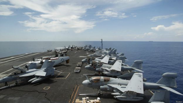 美国做出亚洲倾斜战略后,包括航母在内的各类军舰在南海巡航已经成为常态2010年希拉里仍然担任国务卿的时候在越南举行的东盟会议期间首先提出在南海“自由航行”的问题。该议题标志着美国“亚洲倾斜”战略的开始,从而使南海成为美国和中国紧张军事对峙的区域。