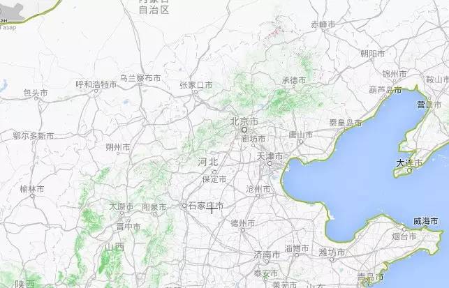 好吧,有一点点绿。再拉近,北京附近: