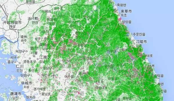 而韩国首尔附近是这样的: