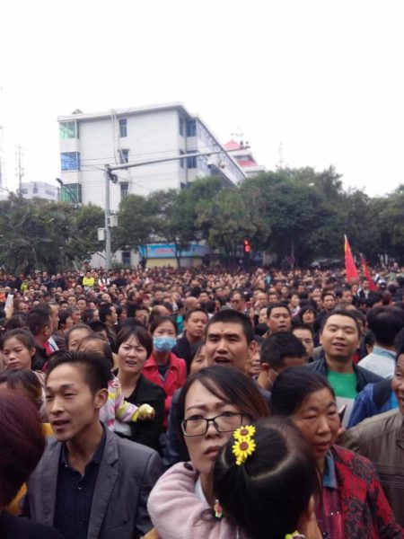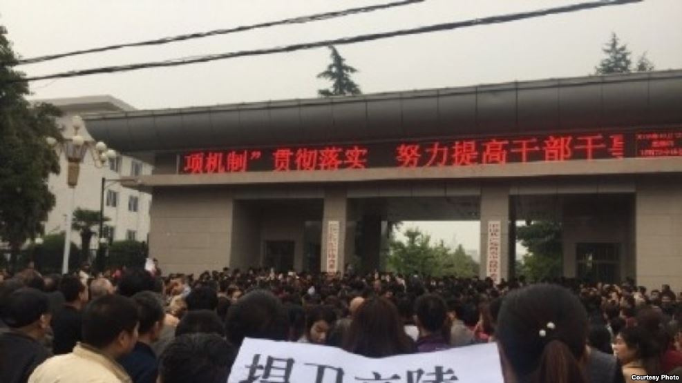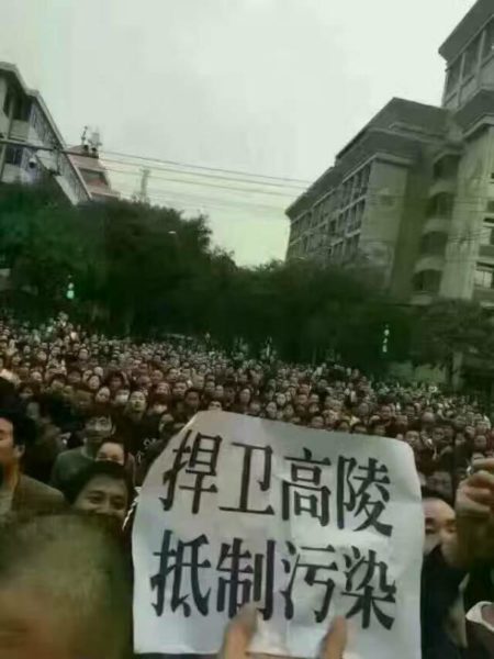 逾万人聚集高陵区政府前要求撤销垃圾焚烧项目。(2016年10月中旬,网络图片)