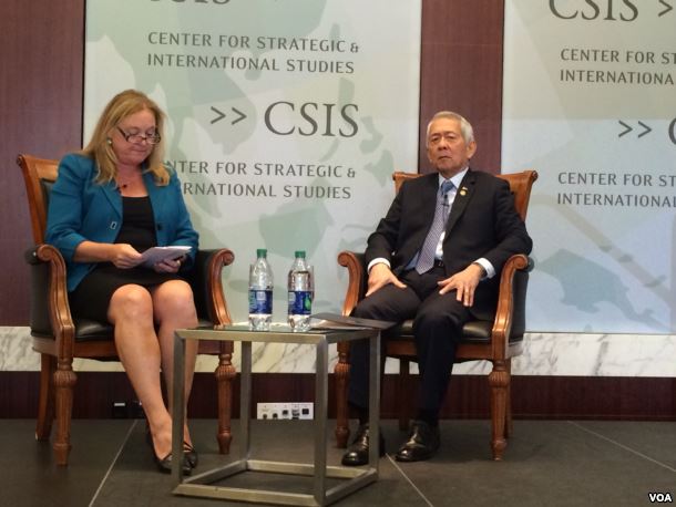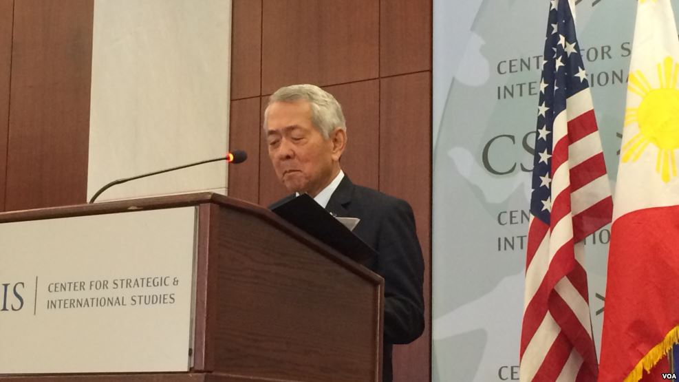 菲律宾外交部长佩费克托·雅赛星期四在华盛顿智库战略与国际研究中心(CSIS)就菲律宾新政府的外交政策和美菲关系发表演讲。