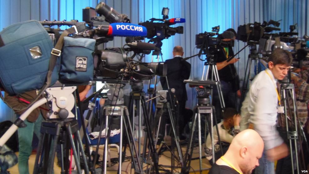 有报道说,全世界的俄语媒体中有90%被克里姆林宫控制。俄罗斯的几家主要官方电视台的节目在国外都能看到。官方的俄罗斯电视台控制的环球电视频道主要针对世界各地的俄语受众。俄罗斯还有专门针对独联体地区俄语居民的电视台。使用多语种,针对非俄语受众专门负责对外宣传的今日俄罗斯传媒集团控制着今日俄罗斯电视台(RT),以及卫星新闻网(SPUTNIK)。