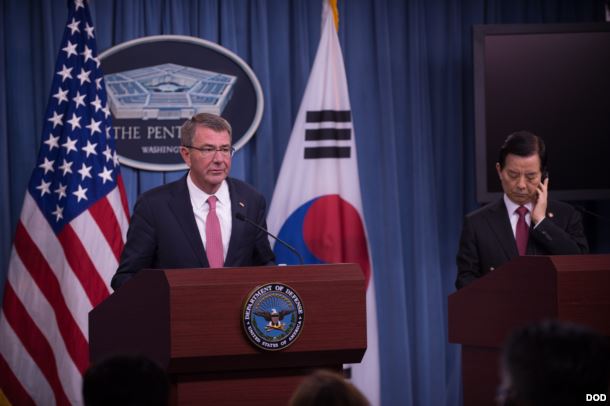 美国和韩国防长2016年10月20日在五角大楼会晤。(美国国防部照片)