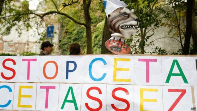 欧盟国家多个城市此前均爆发了反对欧盟与加拿大和美国自贸协定谈判的抗议游行。