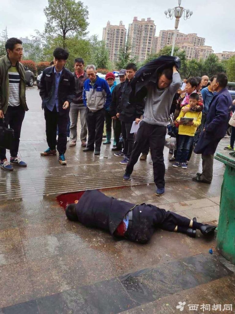 江西省九江市永修县看守所的一名警察,10月29日,在当地一小区门口遇刺身亡。相关图片显示,一名穿警察制服的男子倒在一个垃圾桶旁,头部位置有一大滩血迹。据称该男子是看守所副所长,遭人割喉致死。而涉嫌凶徒可能是报复杀人。该凶嫌回家后又持刀捅伤两名邻居。当地警方曾悬赏20万元进行通缉。31日官方媒体报道说,嫌疑人已被捕。