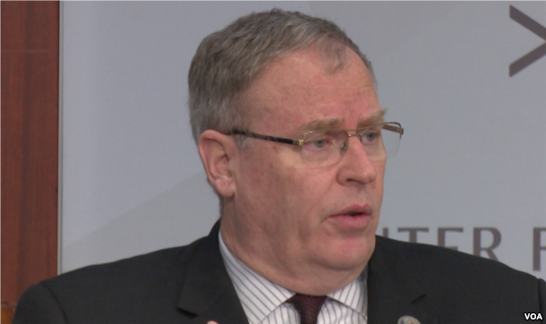 美国国防部副部长沃克2016年10月28日解释第三次抵消战略 (美国之音黎堡拍摄)