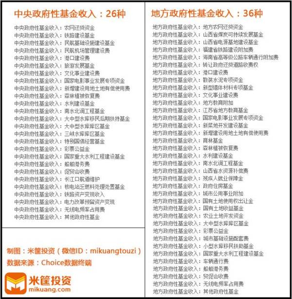 政府性基金中包含的费、金 ↓↓↓