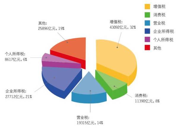 与国外类似的是,中国的税收结构也大致分为所得税、财产和行为税、货物和劳务税三大类。根据国家税务总局发布的《2015中国税务年度报告》显示,目前中国共有18个税种,分别如下: