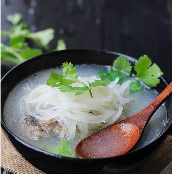 鱼,白萝卜,洋葱,姜,料酒,油,盐和香菜
