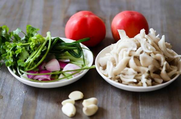 2.蘑菇、西红柿洗好,洋葱切好,备用。