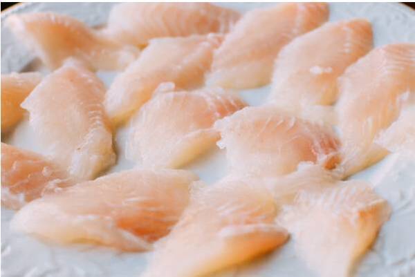 1.巴沙鱼柳切片,加入料酒、葱、姜、胡椒粉、蛋清、淀粉和盐,腌制1个小时。